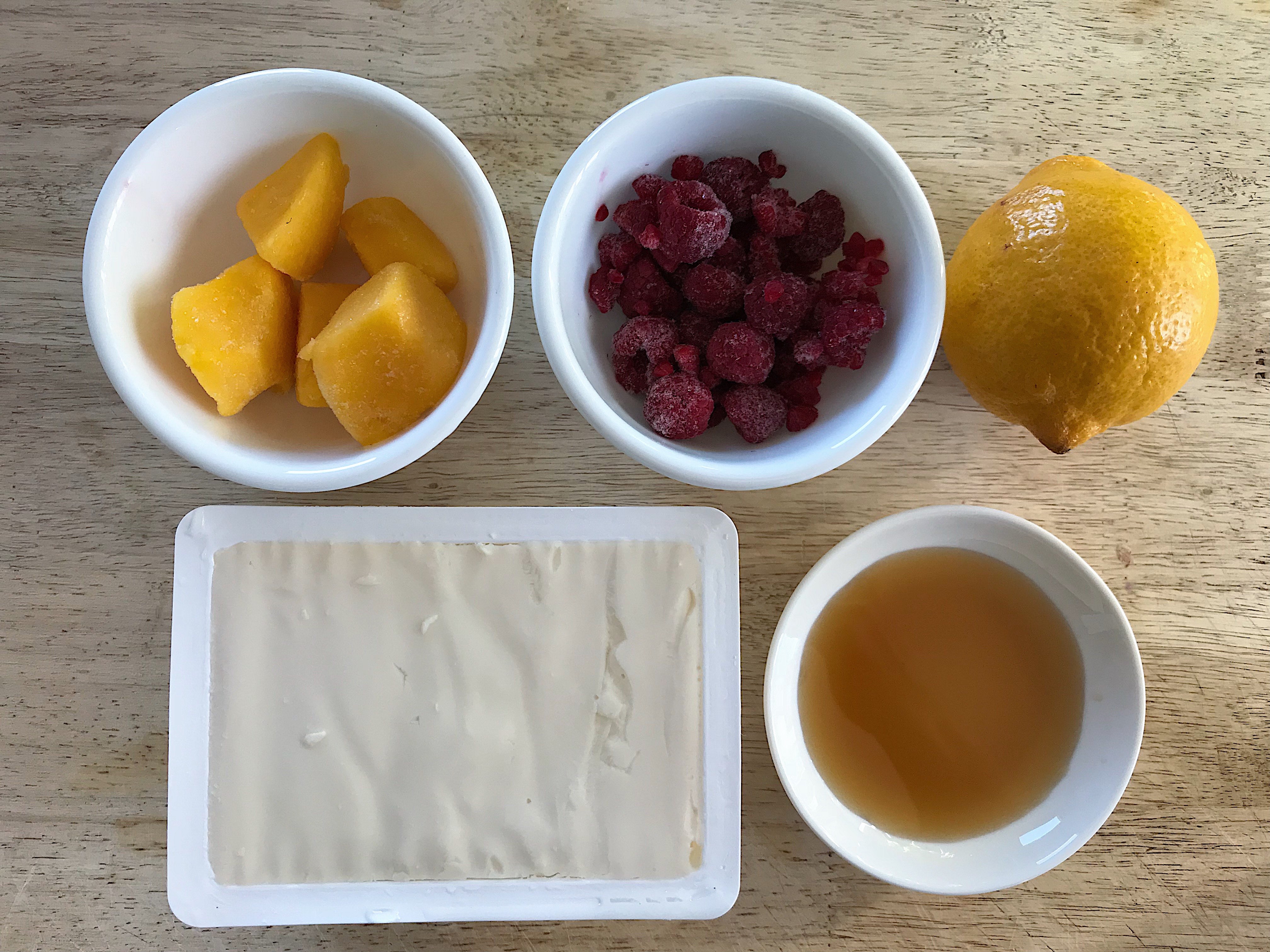 Si vous aimez moins la légère acidité des framboises, essayez cette recette avec des fraises ou des bleuets. Ajustez la quantité de sirop d’érable selon la «sucrosité» du fruit. Tout de même, j’ai créé cette recette en jumelant les framboises avec de la mangue, un fruit plus doux qui complète bien la framboise. Quant au jus du citron, n’ayez crainte! Il ne rendra pas amer votre dessert! En petite quantité, il masque le goût de soya du tofu pour faire ressortir celui des fruits. Cela est donc parfait pour un dessert.