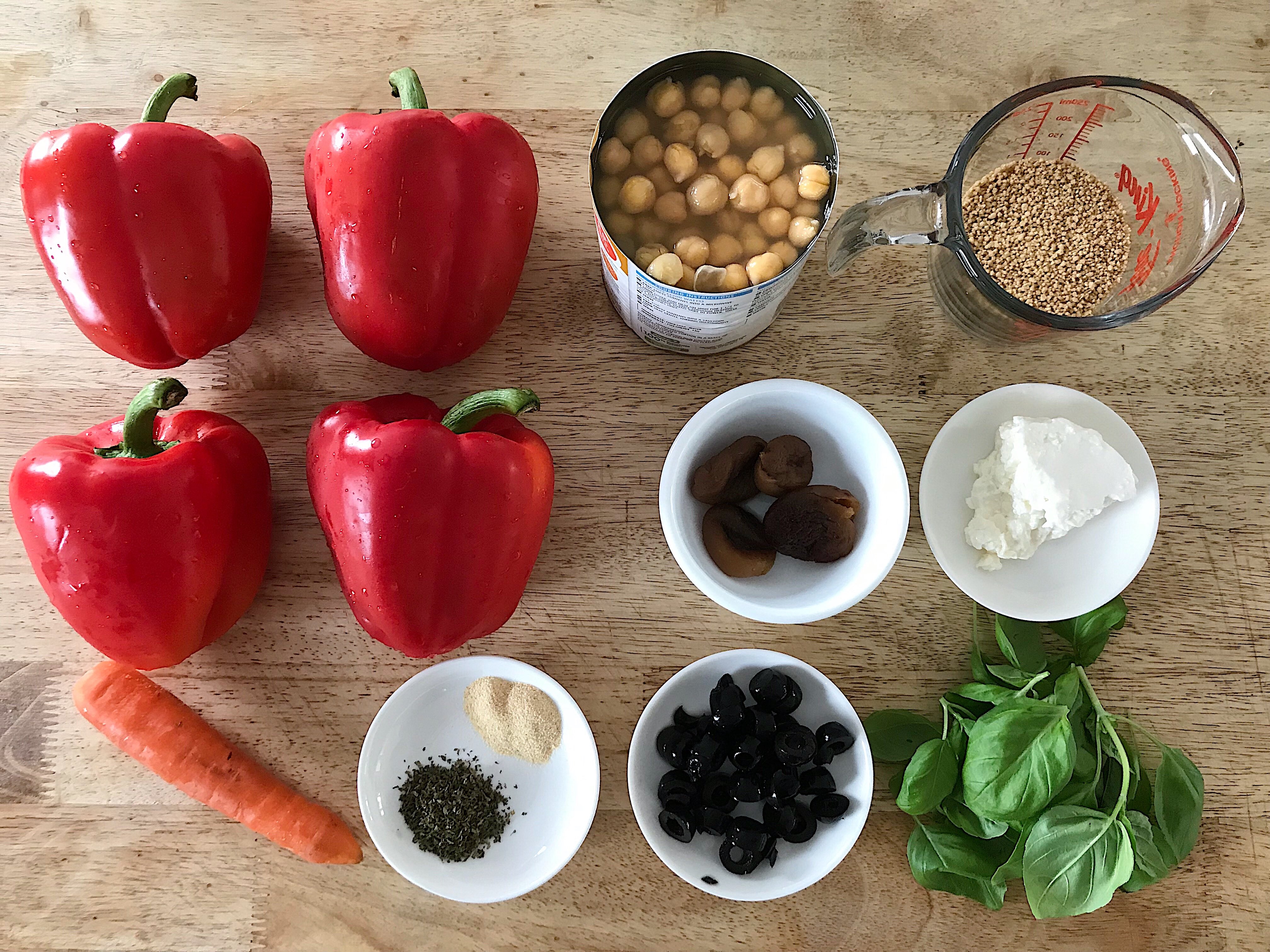 Cette farce de couscous et de pois chiches est géniale. Hormis le couscous (qui ne nécessite que 5 minutes de cuisson), vous n’auriez rien besoin de pré-cuire! Il ne suffit que de tout mélanger dans un bol et de distribuer dans les poivrons. Cela sauve beaucoup de temps de préparation. Le goût est pourtant au rendez-vous puisqu’en cuisant, le poivron deviendra légèrement sucré et fondant, complémentant les saveurs de la farce.